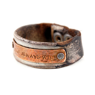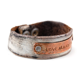 Very recently I was reunited with a piece I had created a few years ago.  It needed a snap repair after being worn daily since it went to its forever home.  The wearer of this cuff described it as her "armor" and its sentiment resonated so deeply with her that she was sharing it with loved ones in their time of need of such reminders.