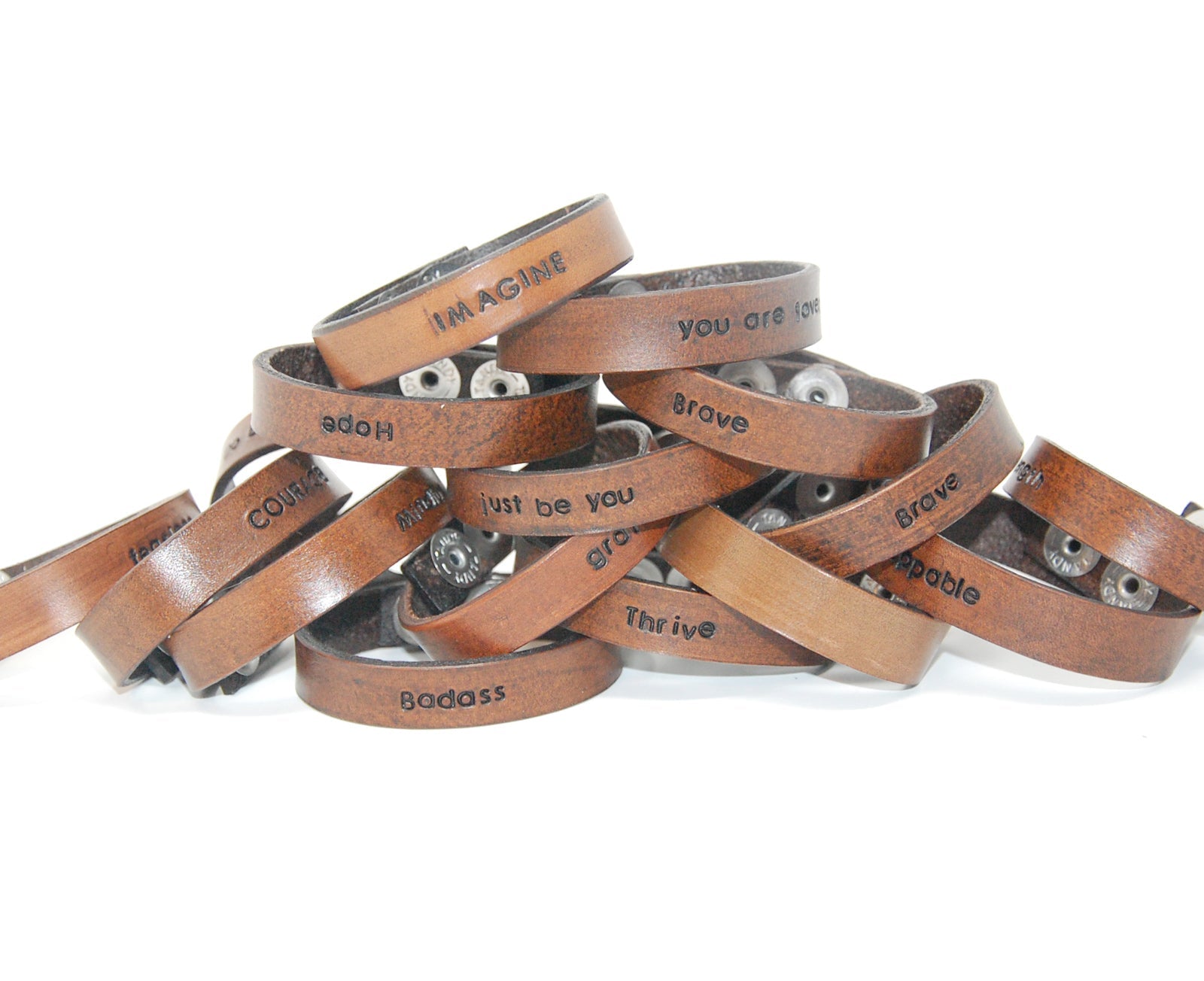 Embrace the power of words and their ability to shape reality. Our engraved words leather bracelet line are more than a fashion statement; they are tools of empowerment, ready to infuse your life with positivity and inspiration.