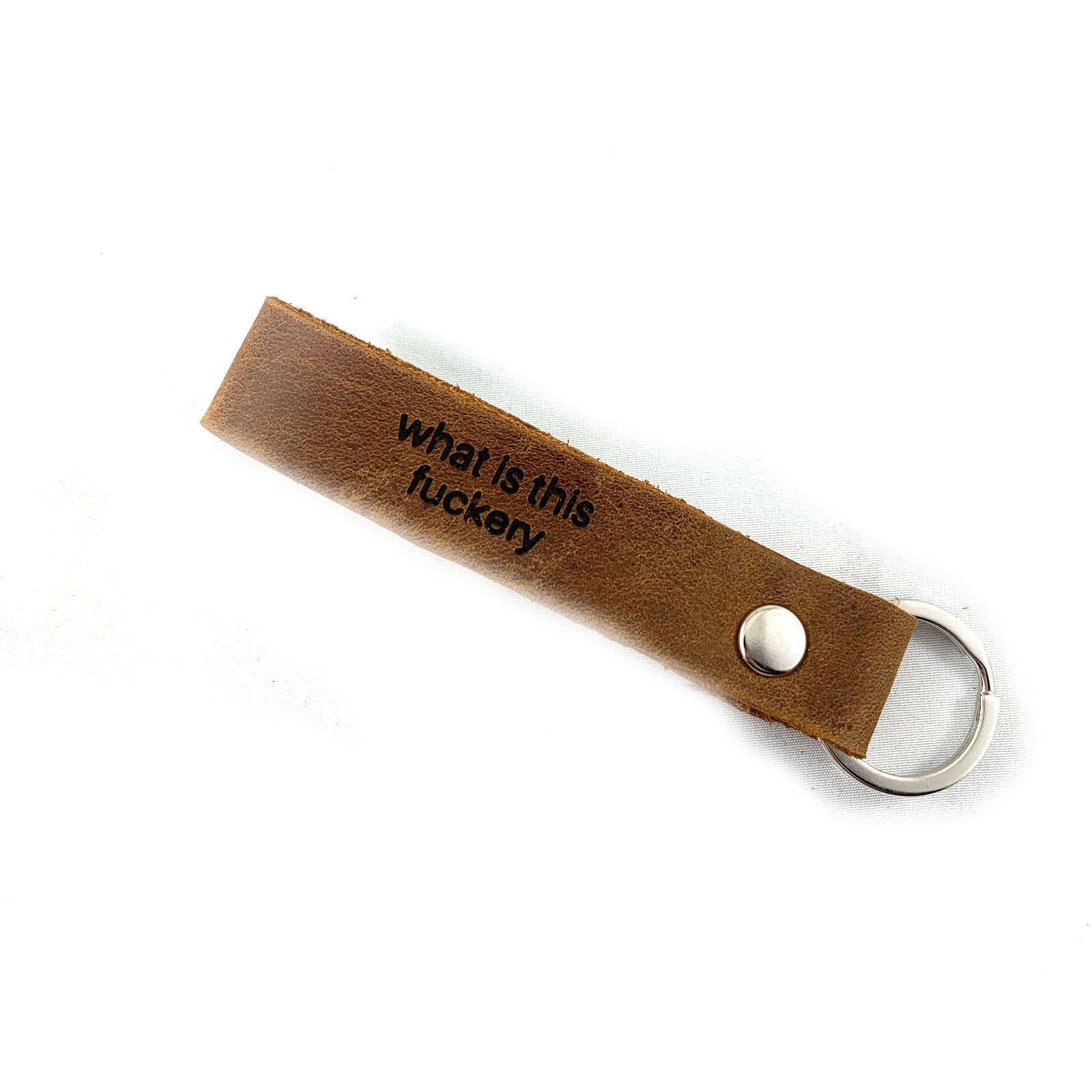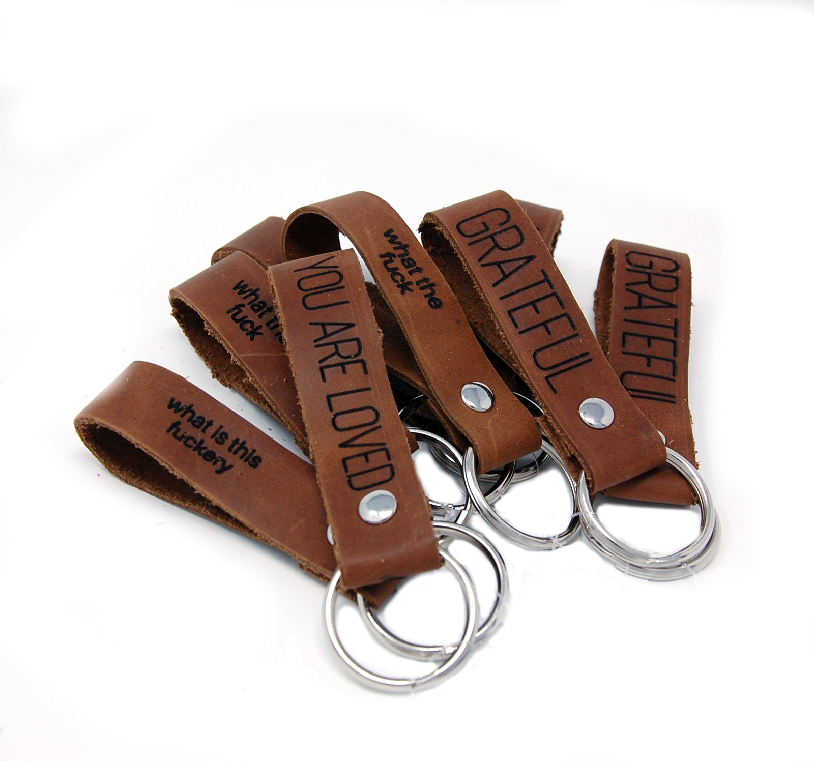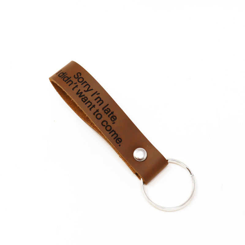 Crafted from premium oil-tanned leather, our key chains are more than accessories; they're statements. Each piece is meticulously laser-engraved with a touch of personality, featuring fun, inspired, and sometimes feisty sayings.