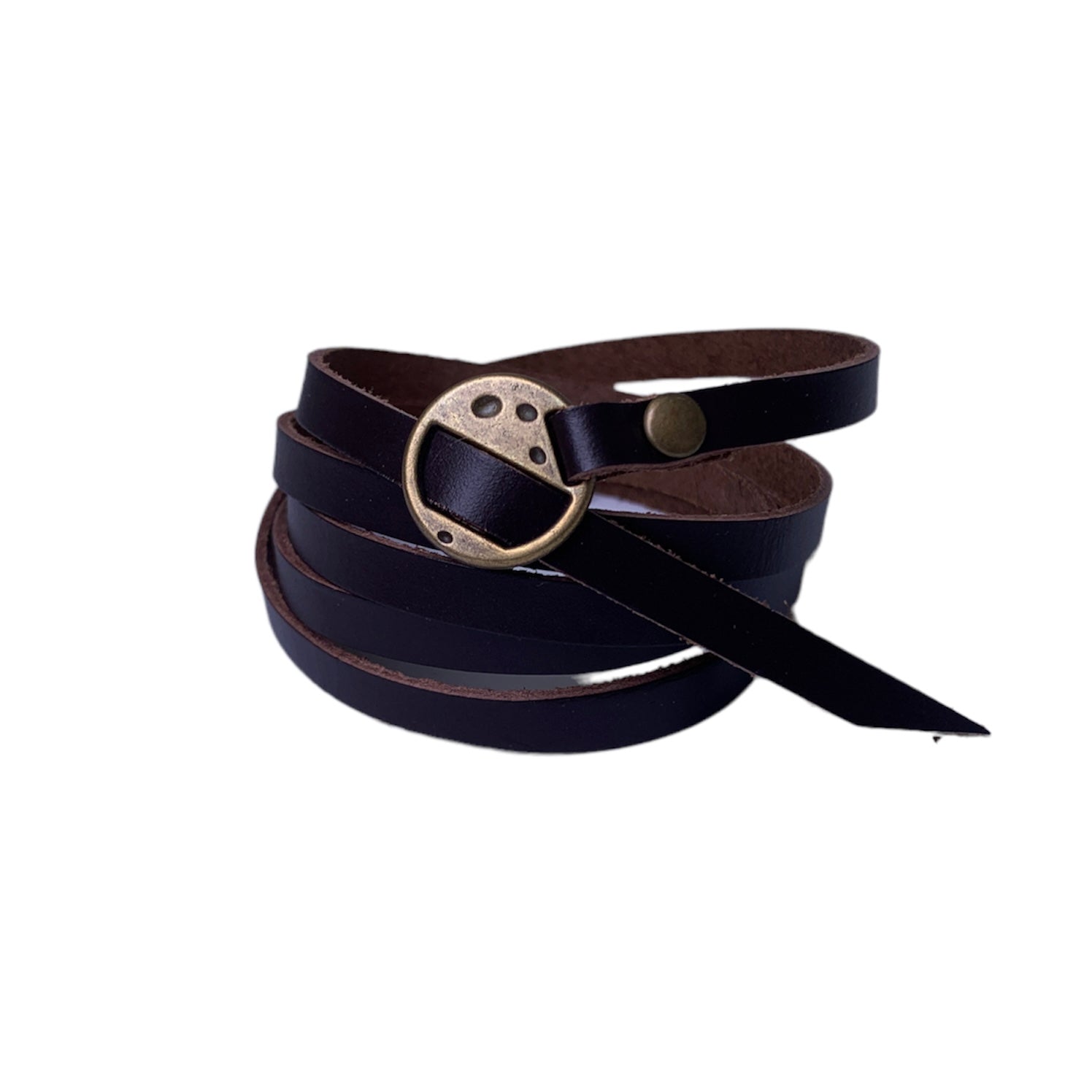Made with a keen eye for detail, this leather bracelet features a fully adjustable fastening system, ensuring a comfortable and secure fit for wrists of any size. The antique bronze-colored fastener adds a touch of vintage charm, enhancing the overall aesthetic appeal of the bracelet.
