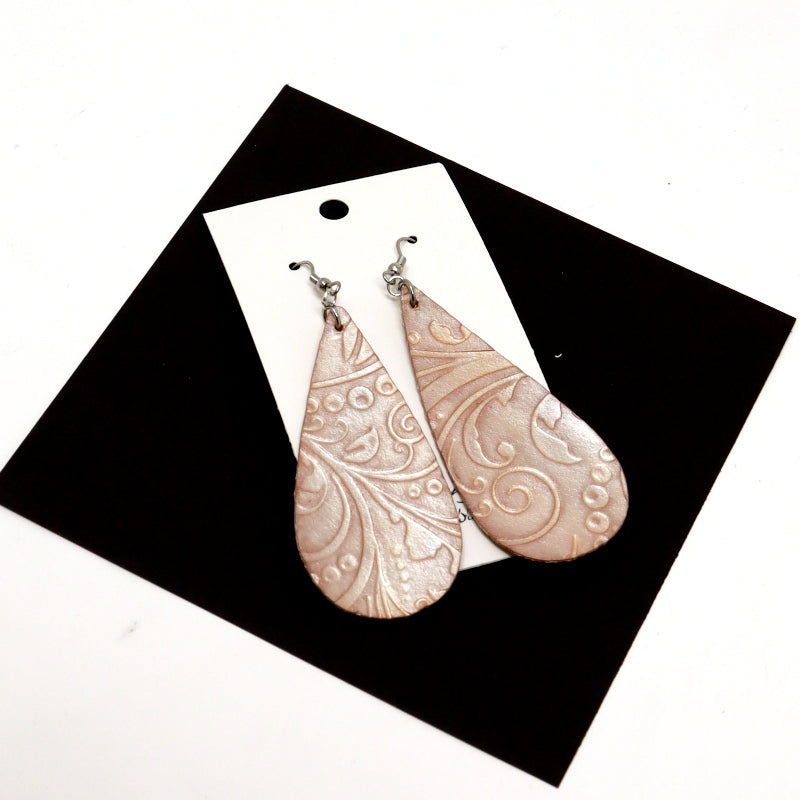 These lovely earrings not only adorn the ears but also serve as a distinctive statement piece. Whether paired with casual wear or used to complement an elegant ensemble, our Tooled Leather Earrings effortlessly elevate any look.