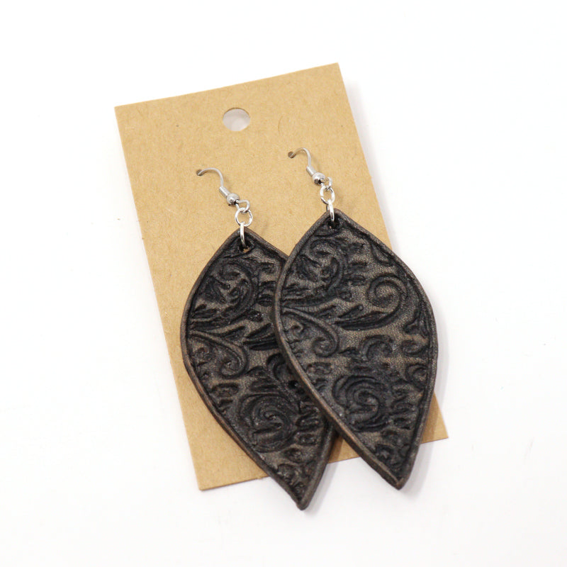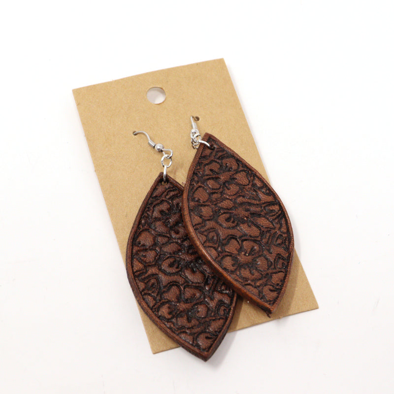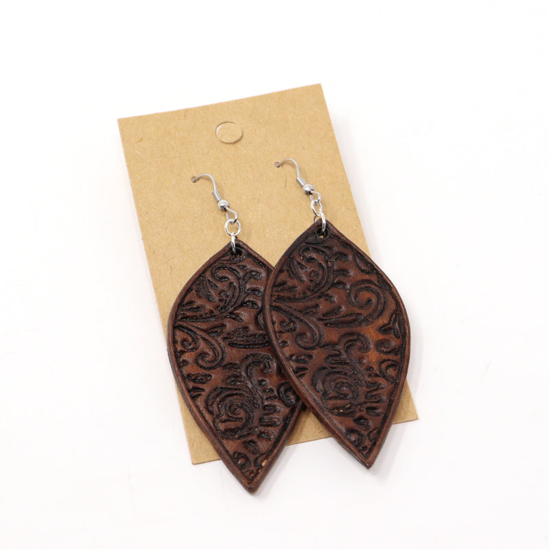 Our Tooled Leather Earrings are the perfect fusion of style and craftsmanship, adding a touch of individuality to every outfit. Embrace the beauty of tooled leather and let these earrings become the perfect accent for your unique fashion expression.